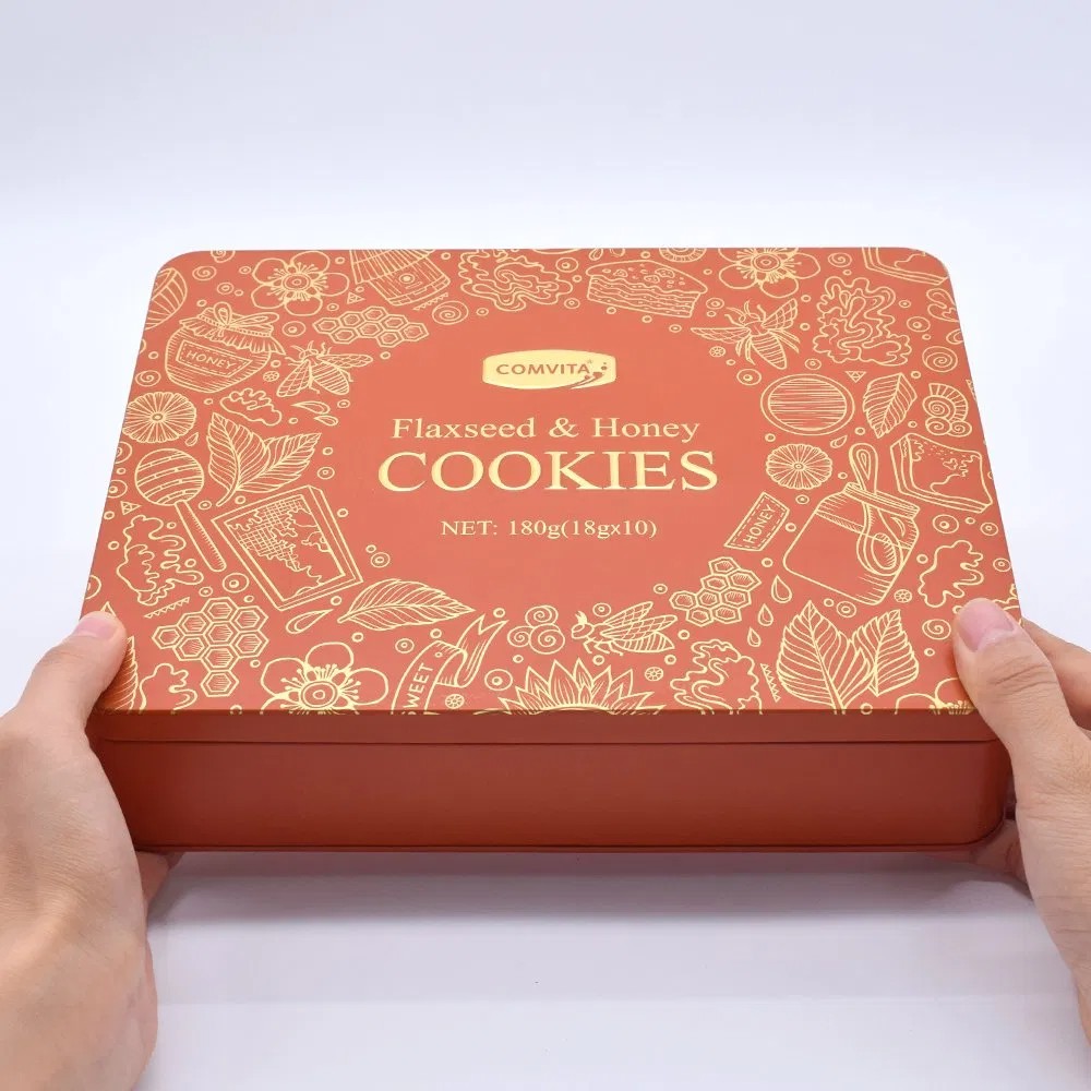 Custom Printed Gold Tin Box for Mooncake and Pastry Gifts, High Quality Luxury Large Rectangle Square Food Safe Cookie Biscuit Tin Custom Printed Metal Tin Case