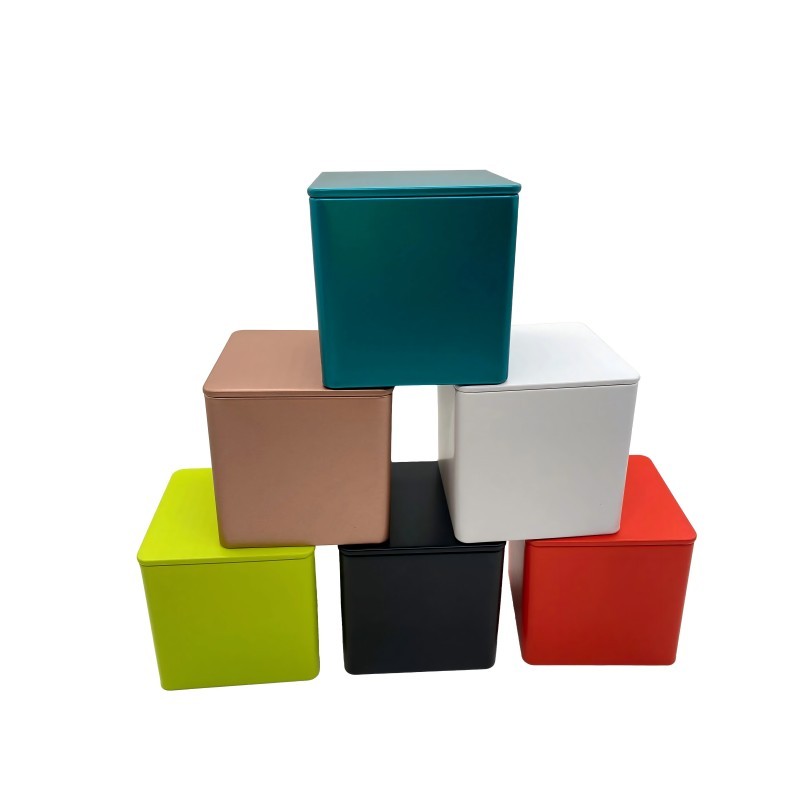 Stock Custom Logo Designs Metal Square Tea Tin Box Container Gift Packaging Food Grade Coffee Cookie Candle Tea Tin Can Container