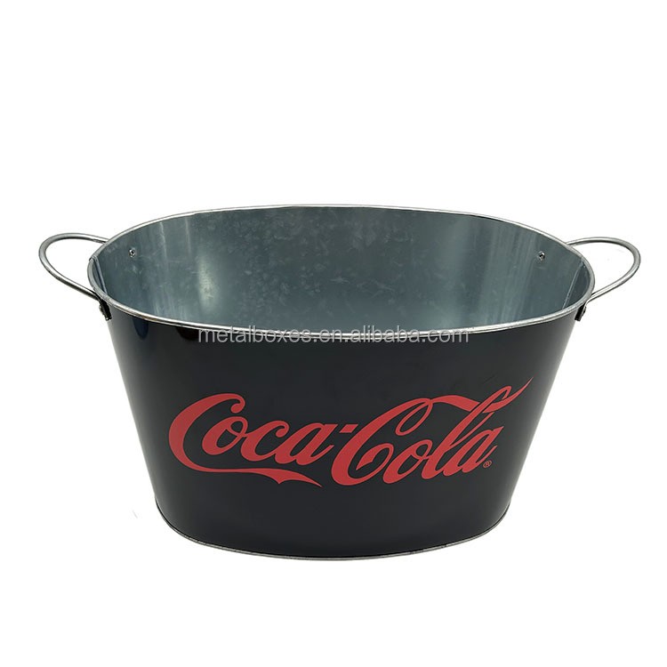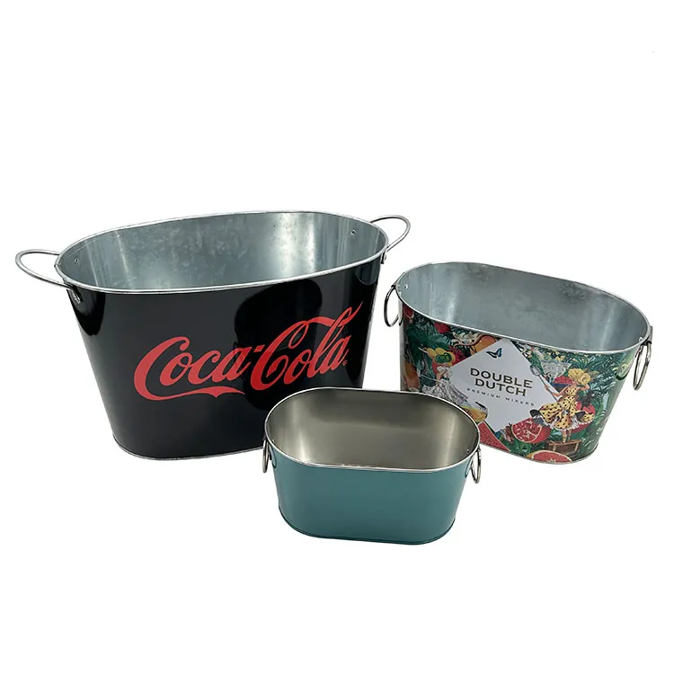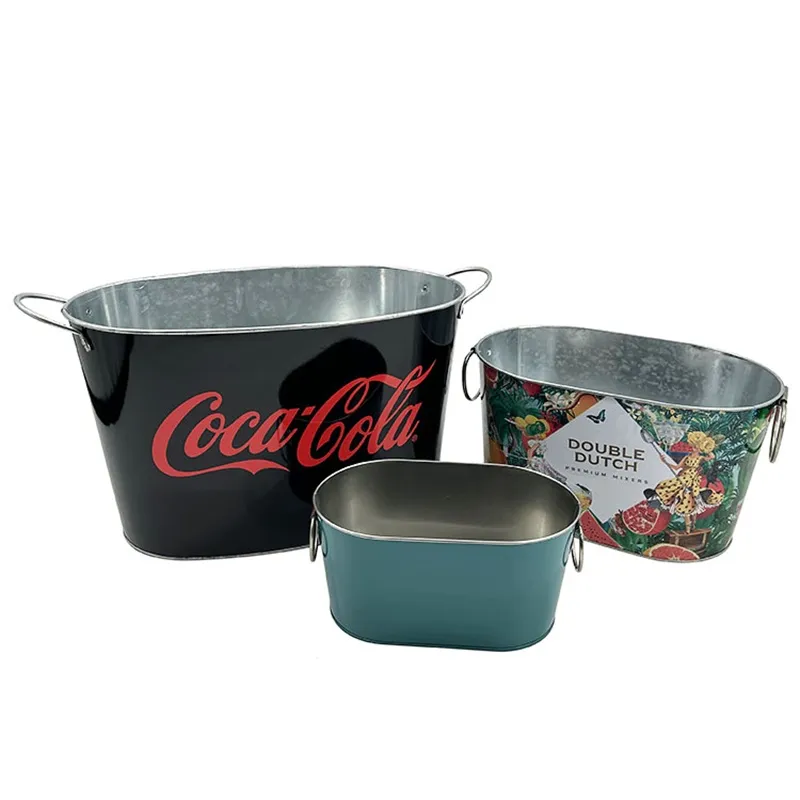 Customizable Oval Galvanized Steel Ice Bucket with Handle