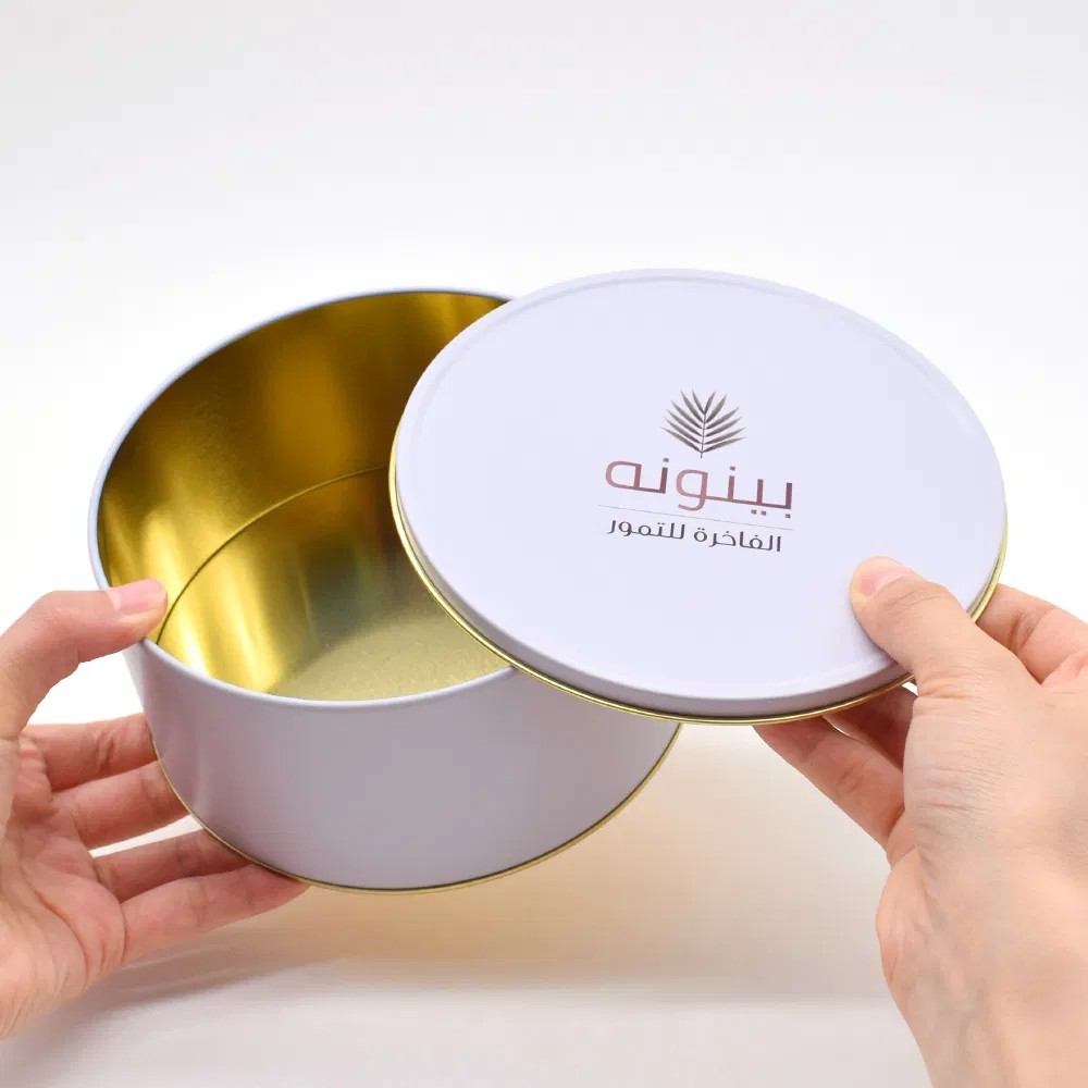 New Products Food Grade Round Metal Container Custom Tin Box Candy Sweet Cake Cookie Tin Can Packaging Box for Baking Cake