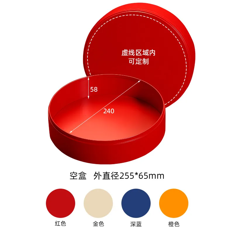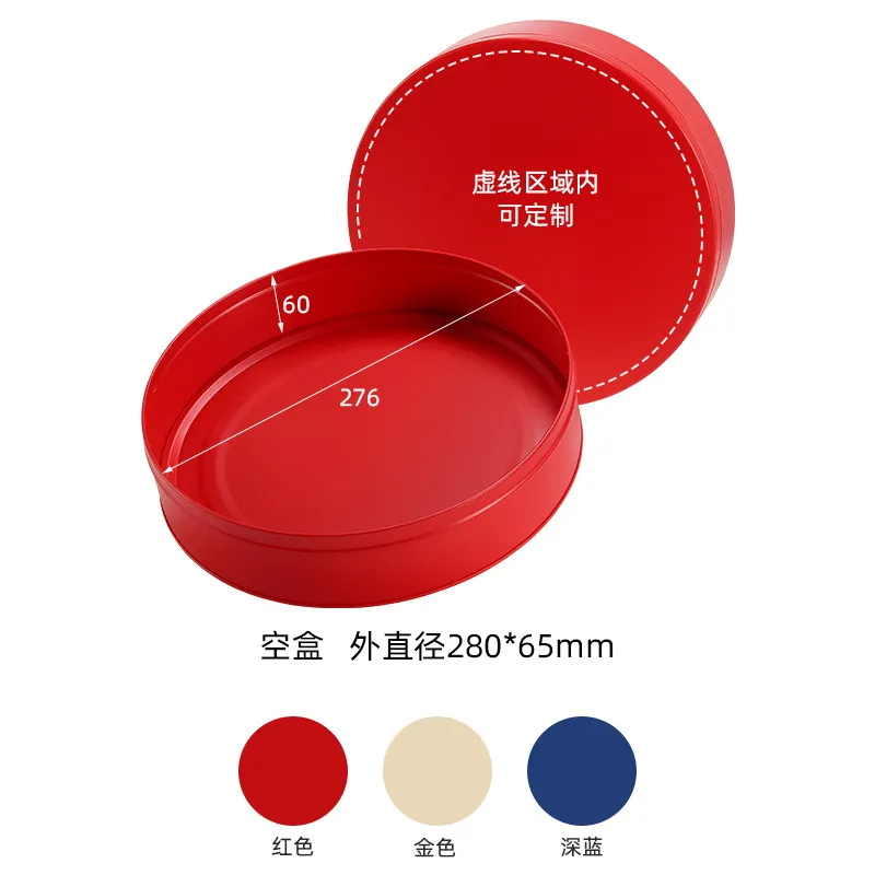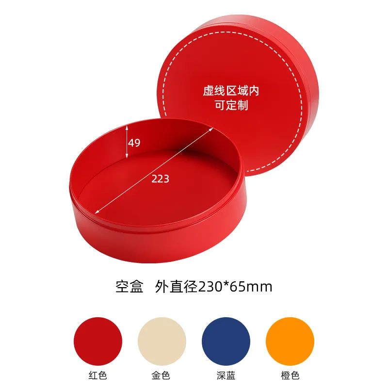190*190*52mm/340*340*65mm/230*110mm/250*110mm/230*65mm/255*255*65mm Food Round Cookie Tin Can Metal Box for Chocolate and Cake Tinplate