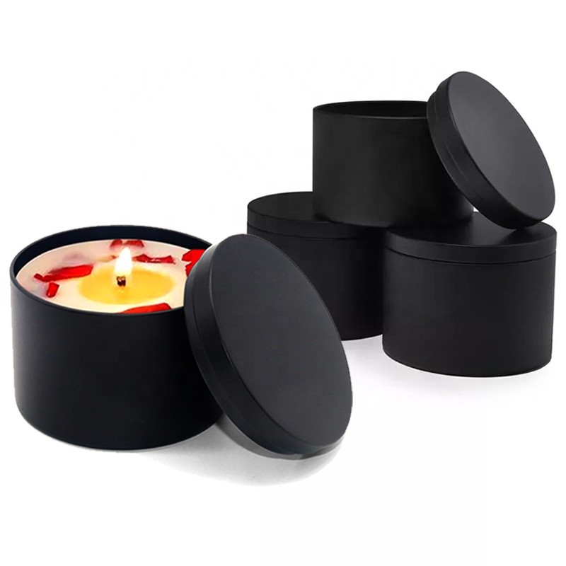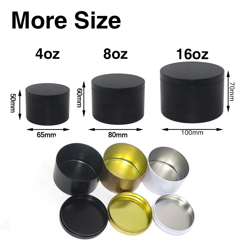 Black White Gold Metal Tin Candle Jar Luxury 8oz Black Seamless Candle Tin Can with Lid
