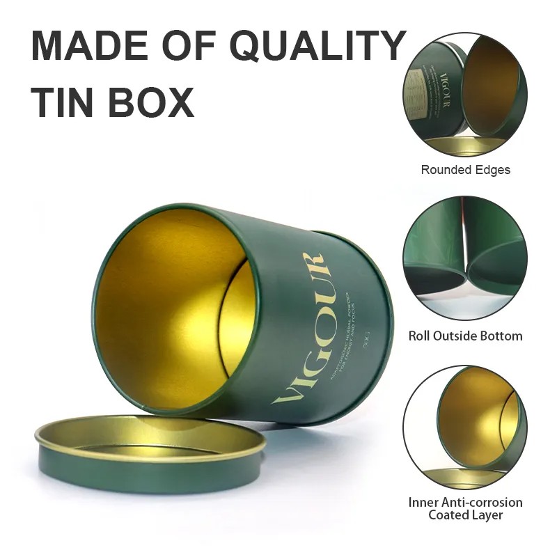 100% Airtight Food Tin Cans Packaging Food Grade Empty Matcha White Round Tea Tin Can