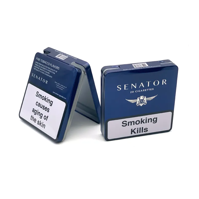 Hot Sale Custom Printing Metal Tin Box Small Rectangle Airtight Child Proof Cigar Tobaco Tin Case with Hinged Lid in Stock