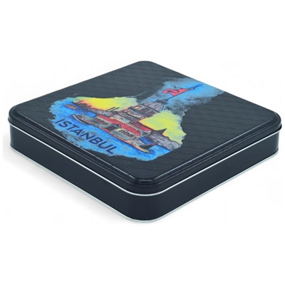 Custom Design Printed 158x158x40 mm Matte Black Square Giftbox Tin Box Food Grade