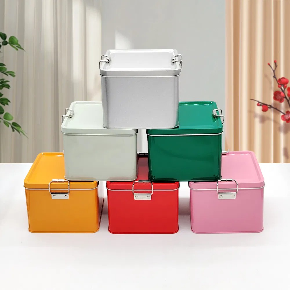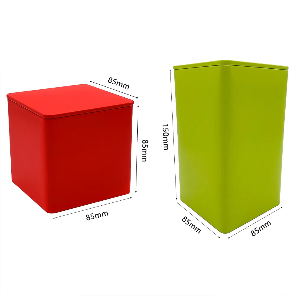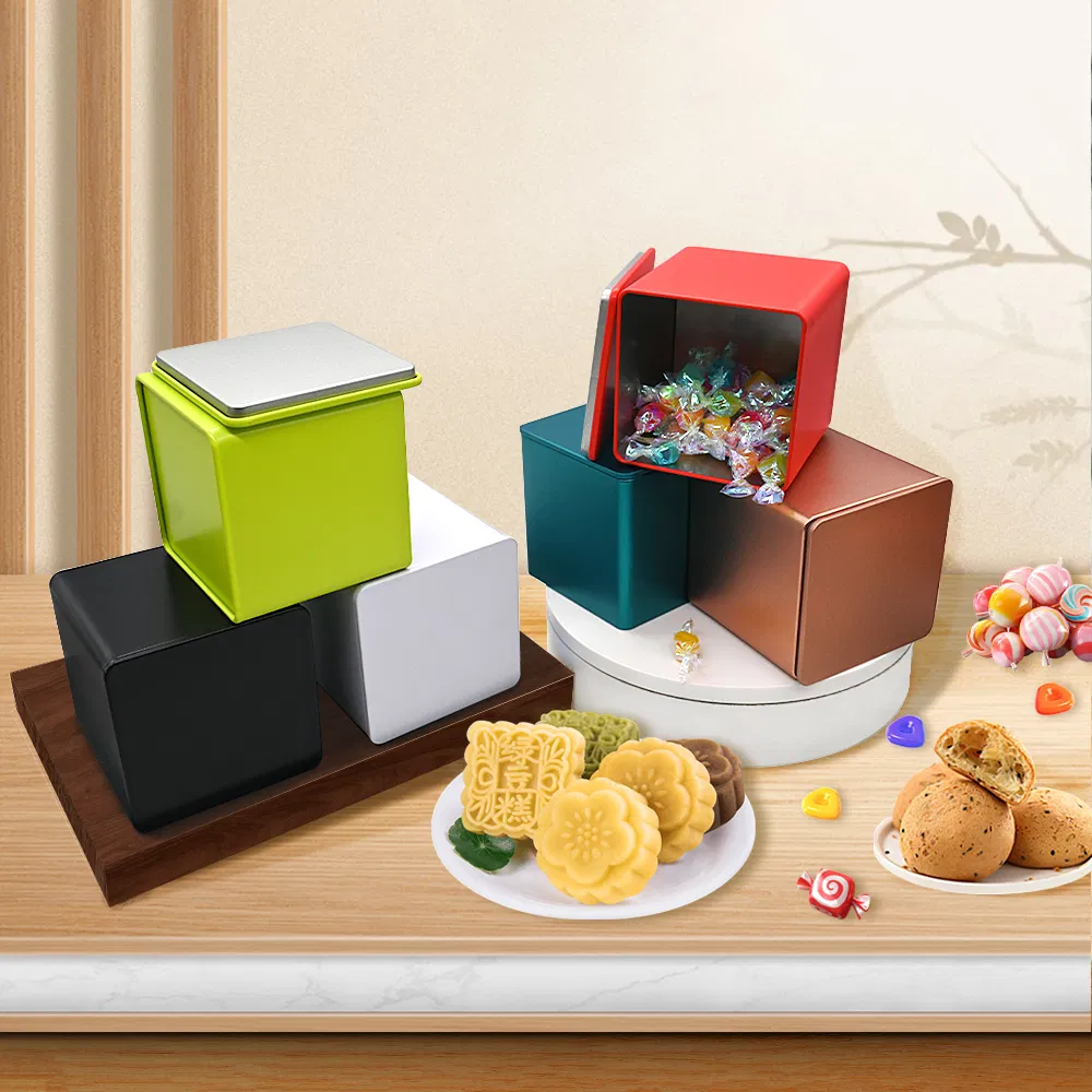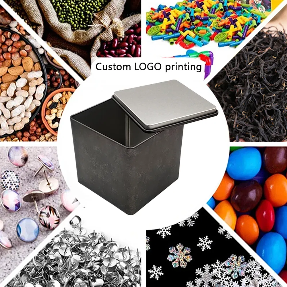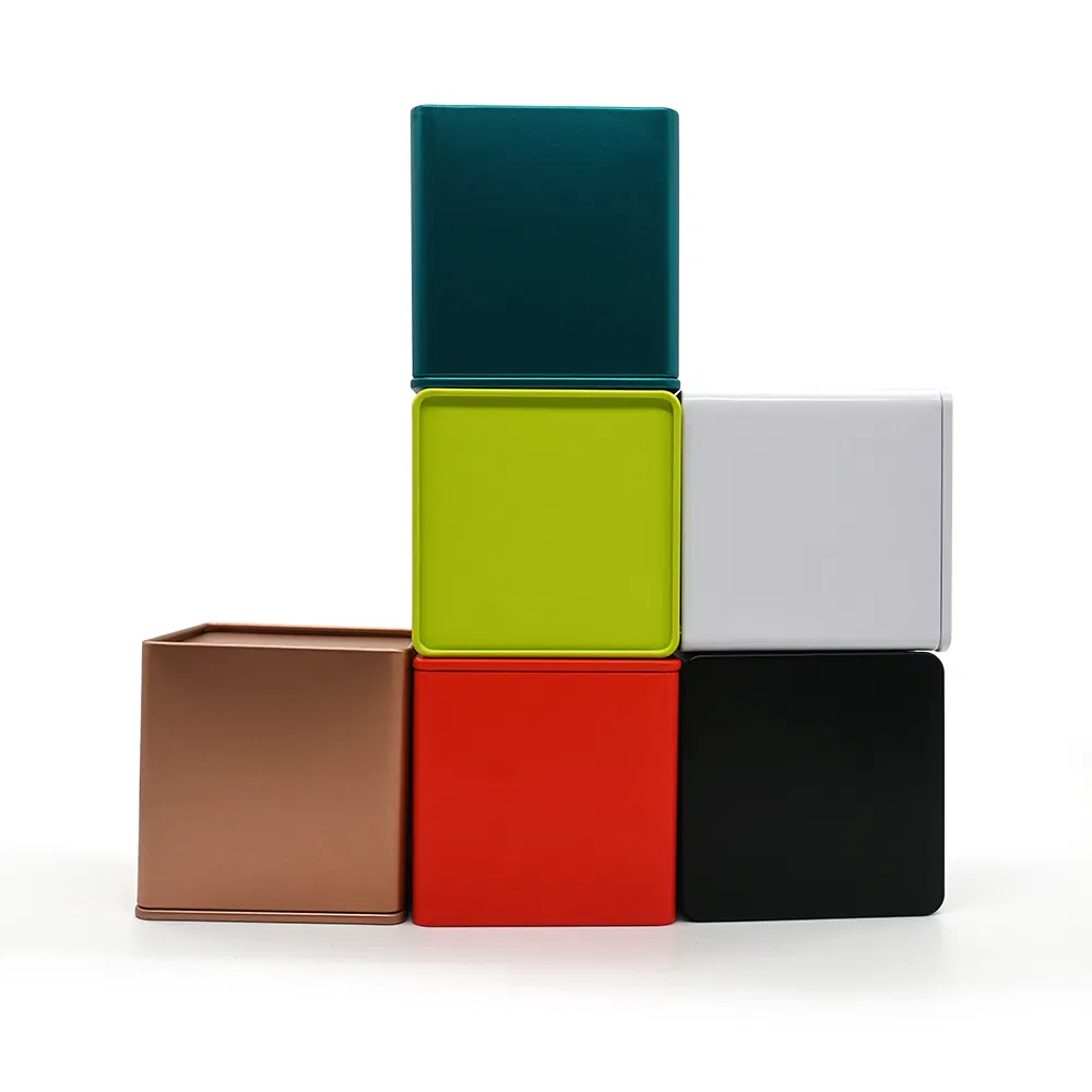 Stock Custom Logo Designs Metal Square Tea Tin Box Container Gift Packaging Food Grade Coffee Cookie Candle Tea Tin Can Container