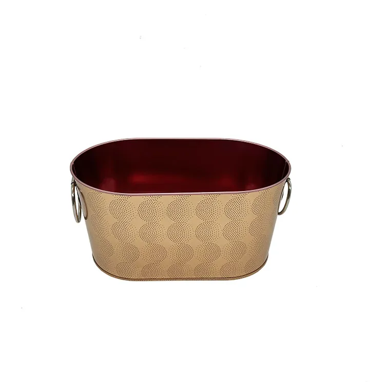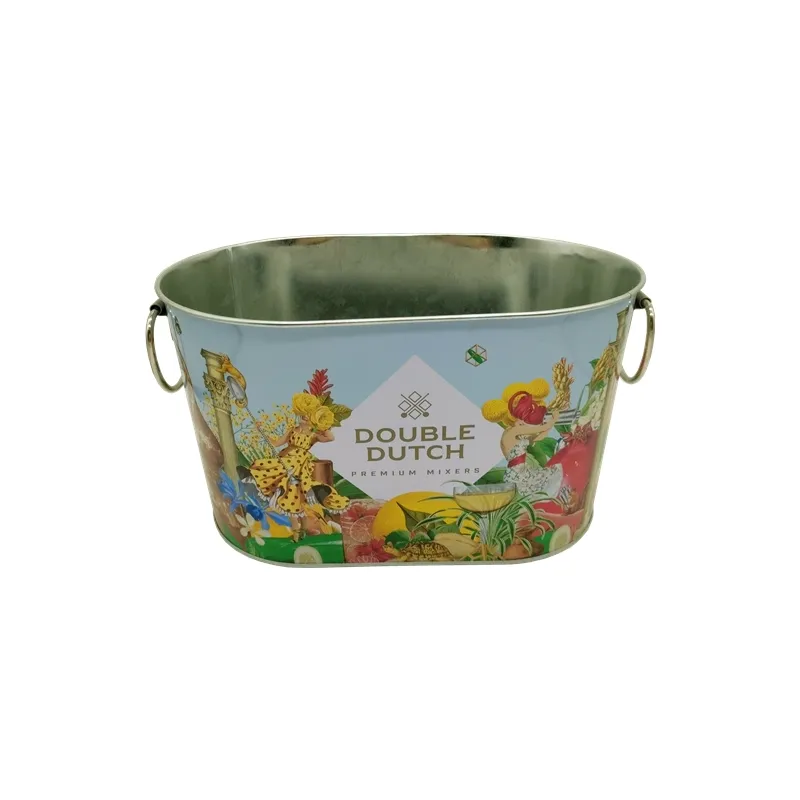 Customizable Oval Galvanized Steel Ice Bucket with Handle