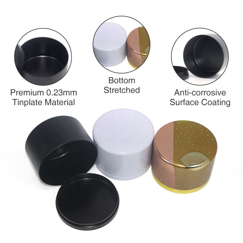 Black White Gold Metal Tin Candle Jar Luxury 8oz Black Seamless Candle Tin Can with Lid