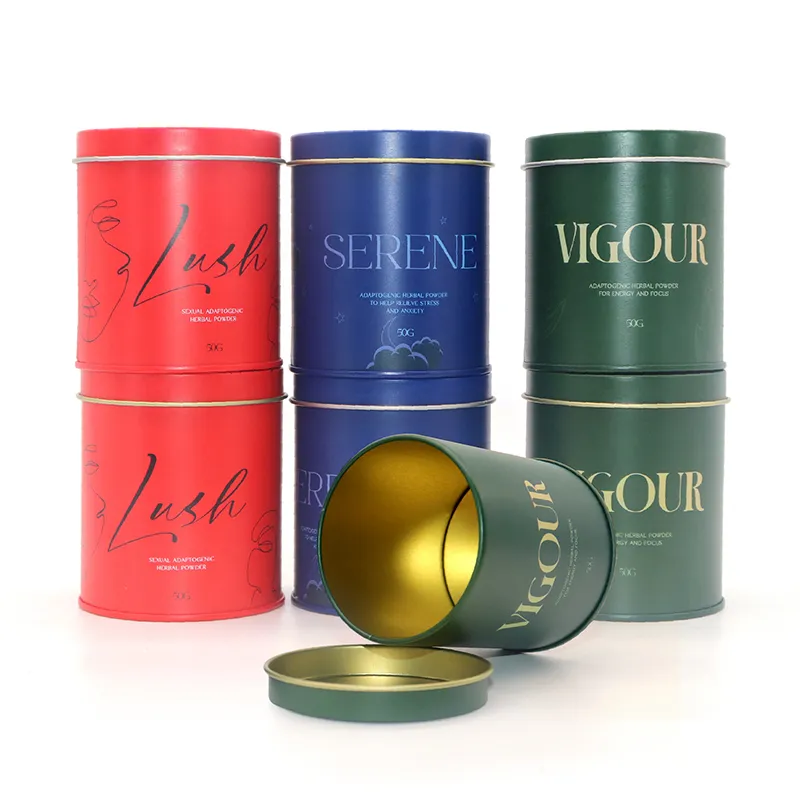 100% Airtight Food Tin Cans Packaging Food Grade Empty Matcha White Round Tea Tin Can